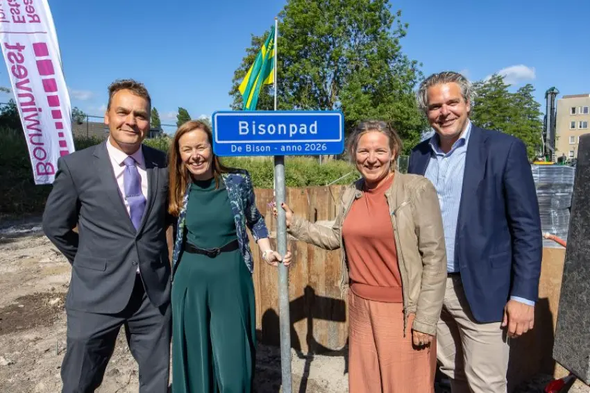 Met het onthullen van het straatnaambord is project De Bison offcieel van start gegaan. De Bison biedt een divers en betaalbaar woningaanbod: 21 sociale huurappartementen, 38 middenhuurappartementen en 16 vrije sector huurappartementen. Het project is gericht op starters en één- en tweepersoonshuishoudens. We zijn trots op onze bijdrage aan deze ontwikkeling en kijken uit naar de realisatie van dit hoogwaardige woongebouw.