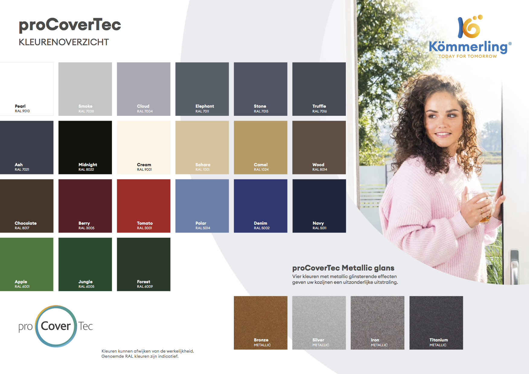 Er zijn vier metallic kleuren toegevoegd aan het bestaande kleurengamma: Bronze, Silver, Iron & Titanium. De matsatijnen look & feel van proCoverTec wordt levendiger door de toevoeging van subtiele glinsteringen. Door veranderende lichtinval ontstaat er elke keer een ander effect.
